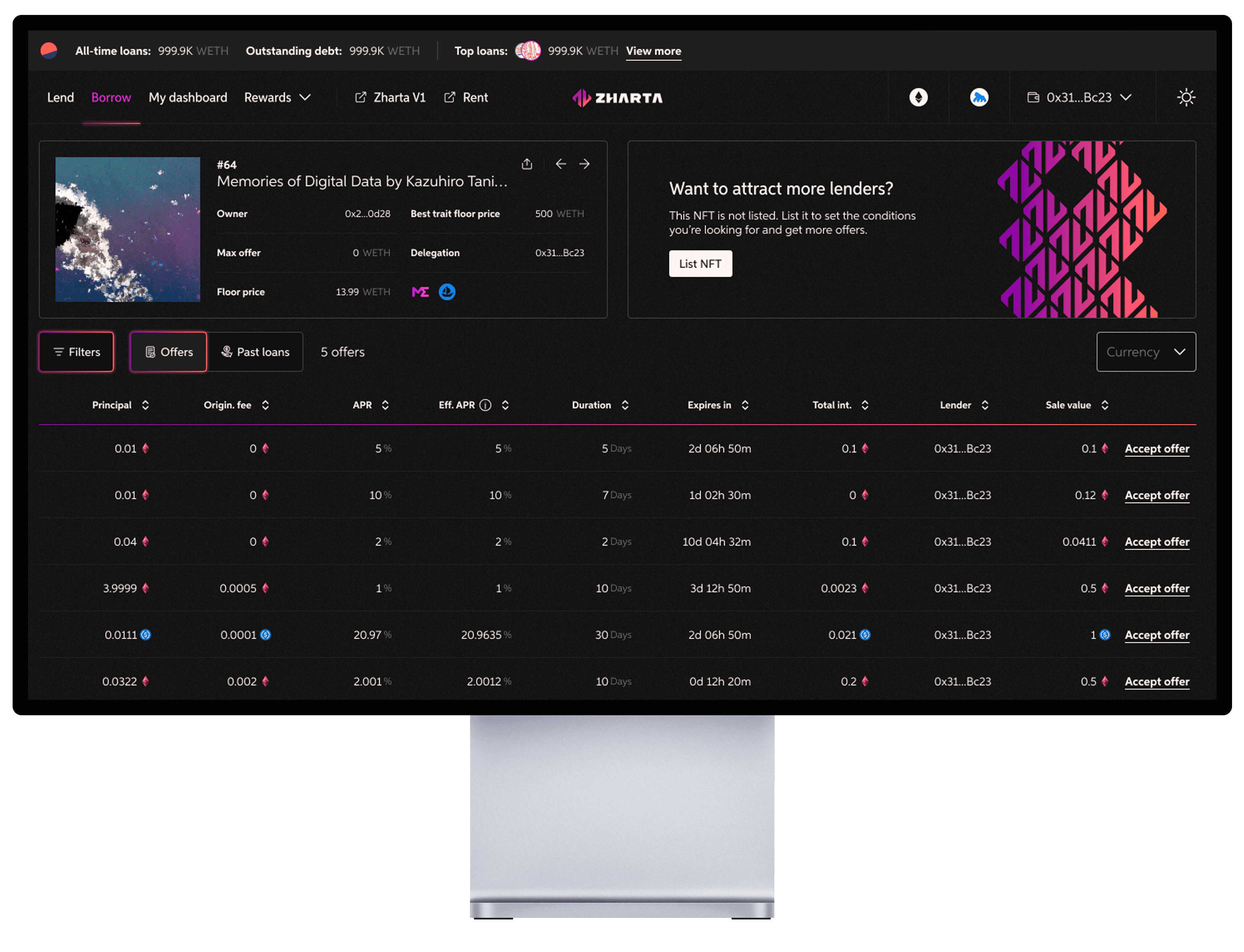A sophisticated Web3 lending protocol. I led the end-to-end rebranding implementation and the evolution of the Design System, simplifying complex blockchain interactions into a seamless user experience for the NFT market.